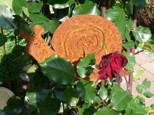 Metallschnecke Edelrost für Garten auf Stecker